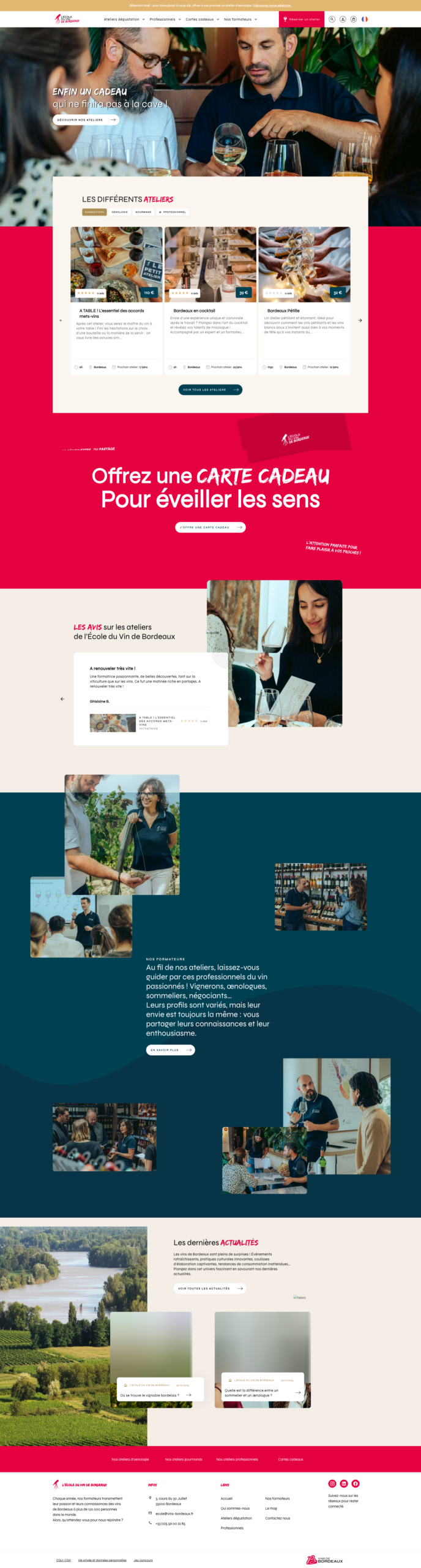 Conception et développement du site internet e-commerce, dédié à la vente en ligne et à la réservation d’ateliers œnologiques.